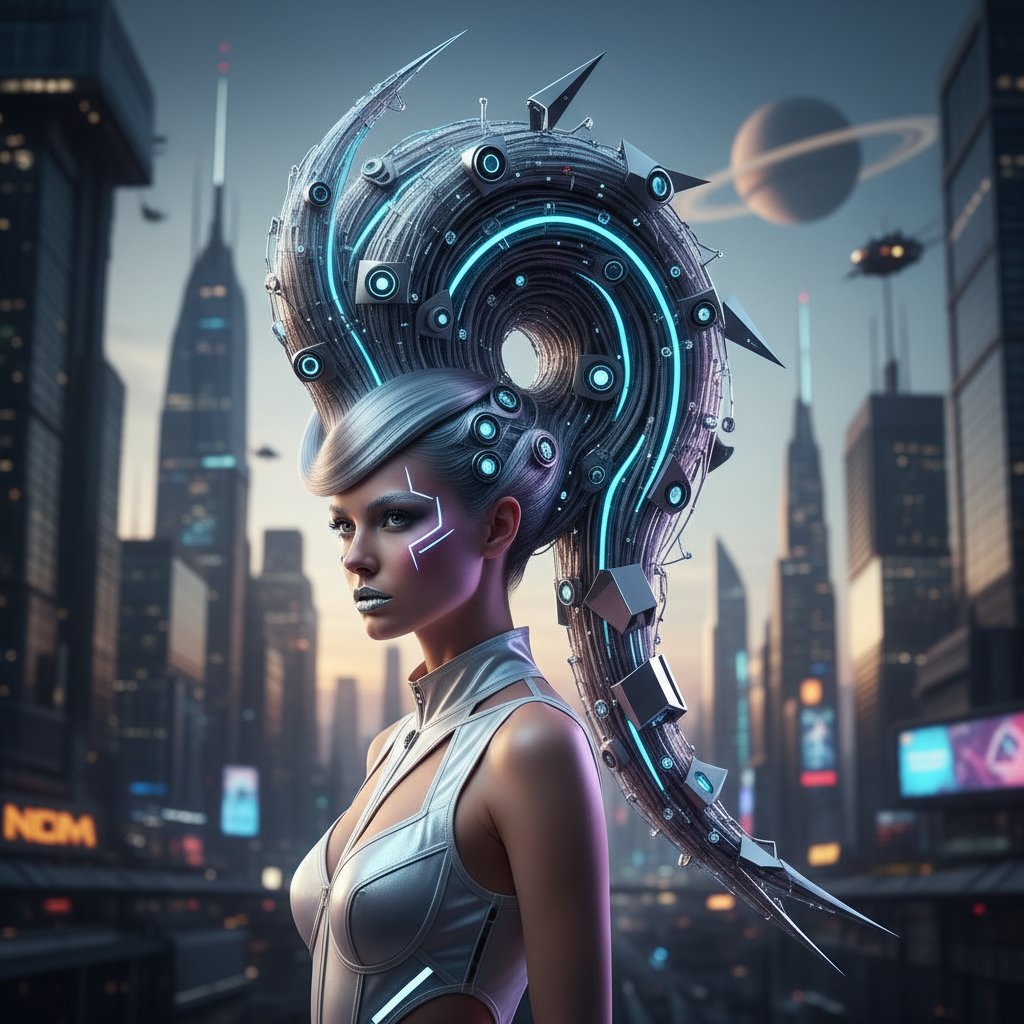 This look embodies the innovative and often avant-garde hairstyles seen in science fiction, pushing the boundaries of traditional hair artistry.