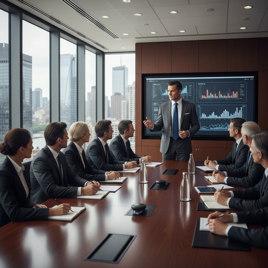 A slick back hairstyle that denotes seriousness and authority, suitable for high-stake negotiations.