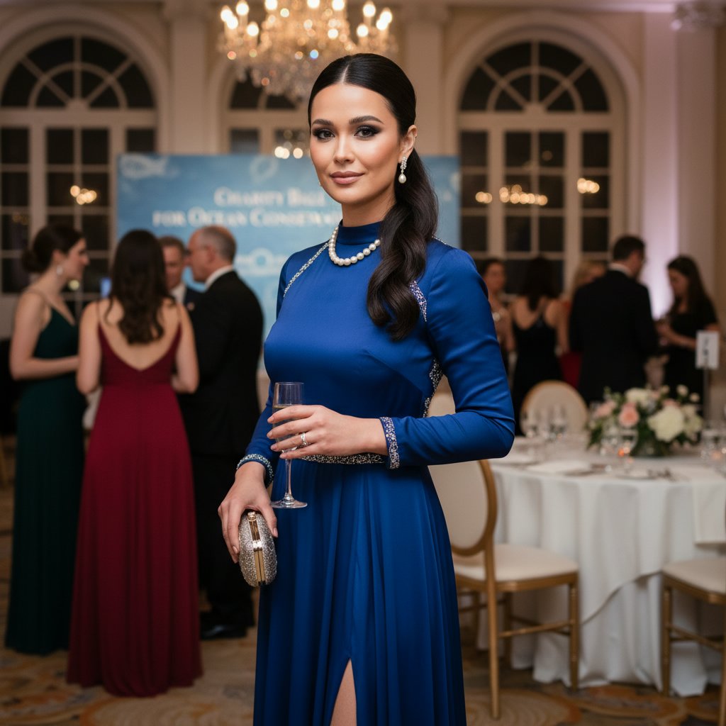 Soft, glamorous curls cascade down, offering a look that's both luxurious and inviting, perfect for engaging with donors.