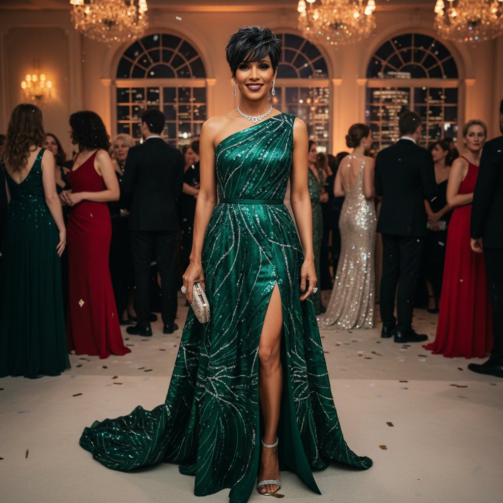 A pixie cut, styled with precision, showcases boldness and simplicity, ideal for making a statement at a formal event.