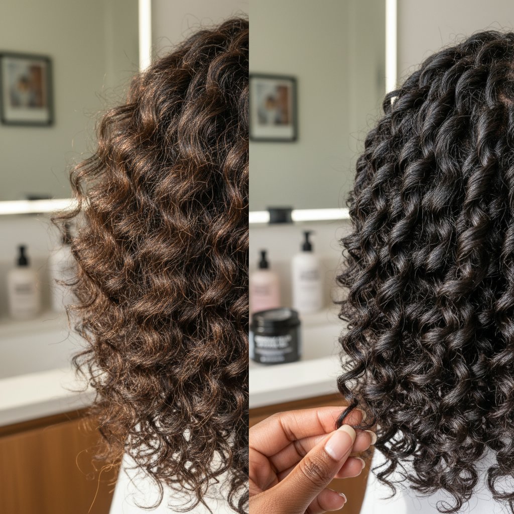 Before: Twist outs that unravel quickly. After: Perfectly defined twist outs that hold, showcasing the gel's effectiveness.