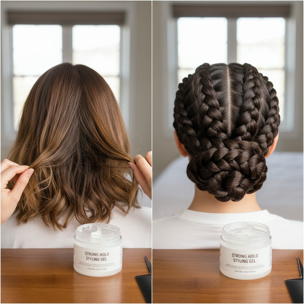 Before: Braids that loosen over time. After: A secure, intricate braided updo, thanks to the gel's steadfast hold.