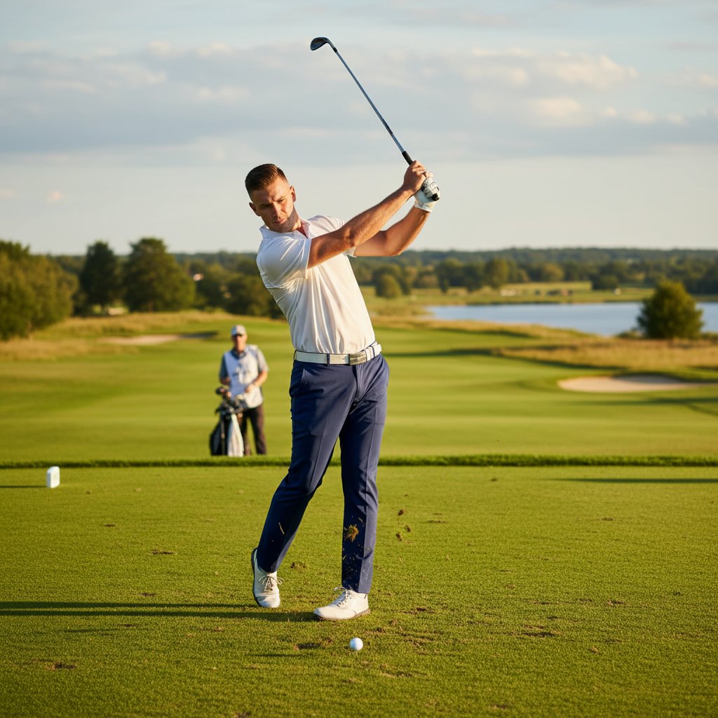 A slicked-back style that complements the golfer's sun visor, perfect for keeping the vision clear and the look sharp.