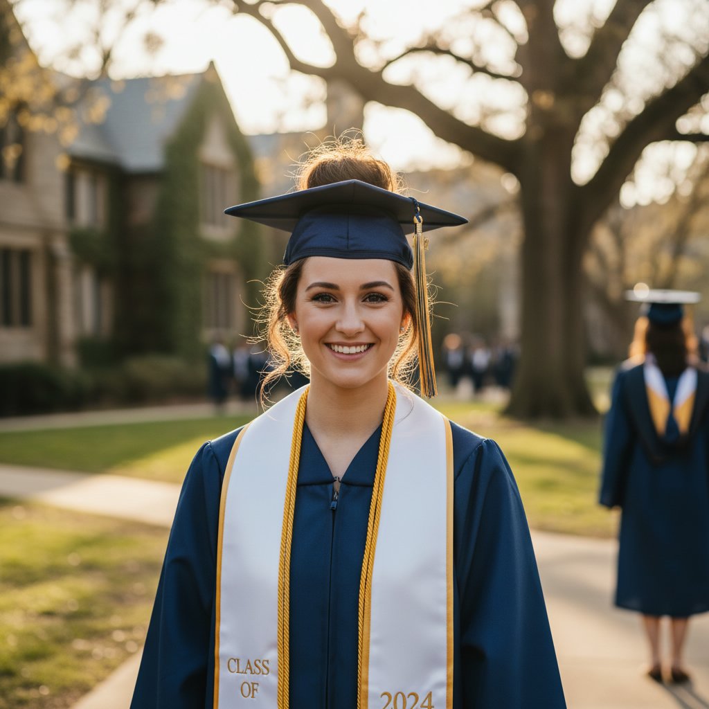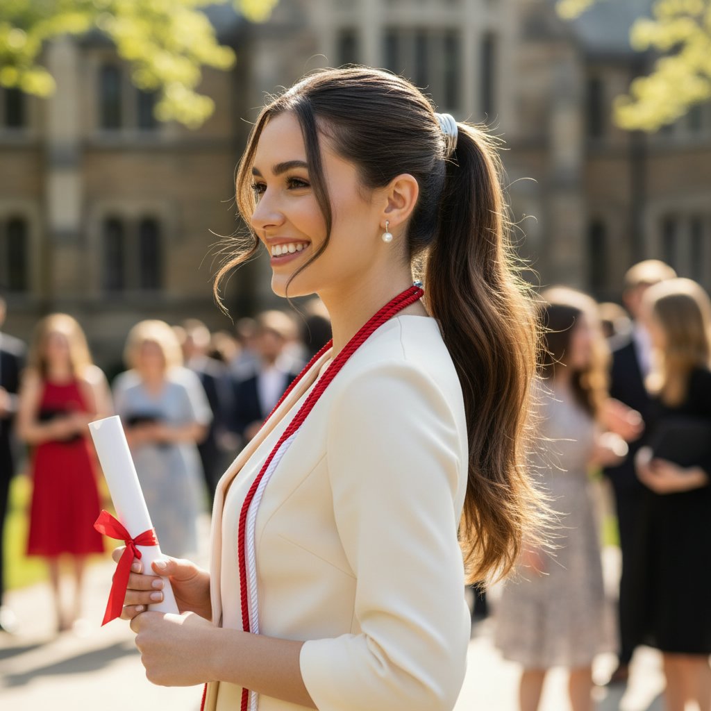 An elegant side sweep, showcasing a sophisticated yet effortless style that's ideal for celebrating academic success.
