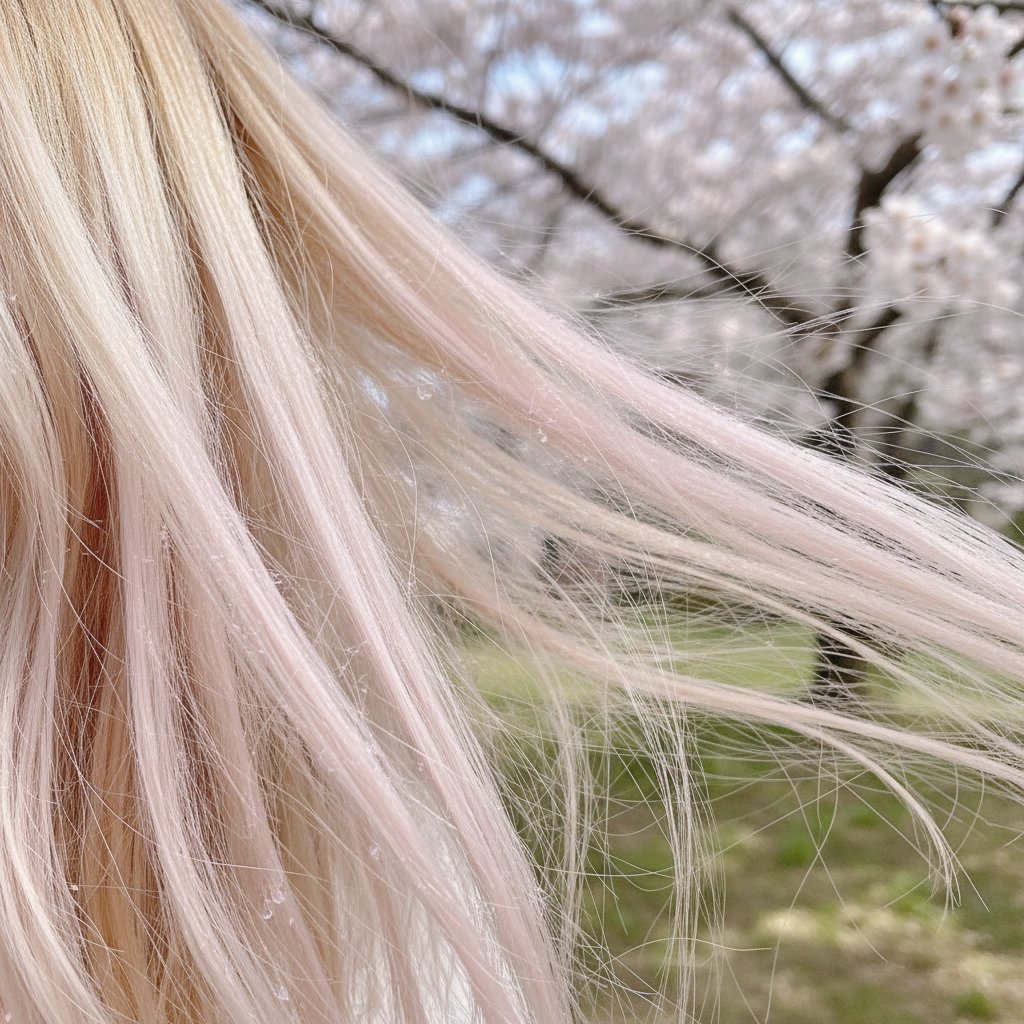 Soft pastel pink chalk highlights add a touch of whimsy to blonde hair, creating a subtle yet striking contrast.