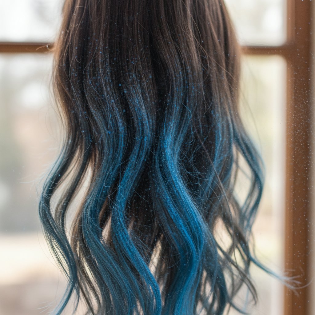Dip-dyed electric blue tips offer a bold edge to dark hair, perfect for an instant, electrifying style update.