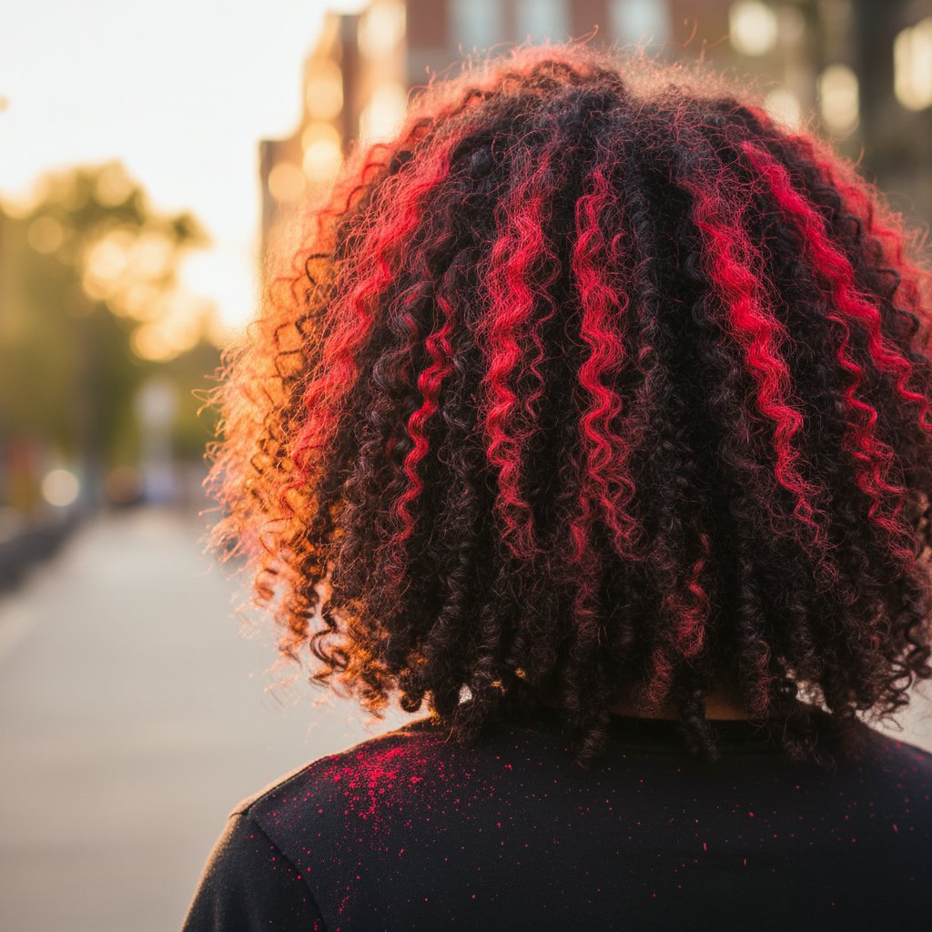 Fiery red chalk accents add a bold, passionate flair to any hairstyle, igniting a look with flashes of intense color.