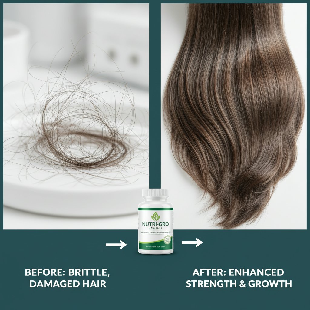 Before: Brittle strands prone to breakage. After: Enhanced hair strength, reducing breakage with nutrient-rich supplements.