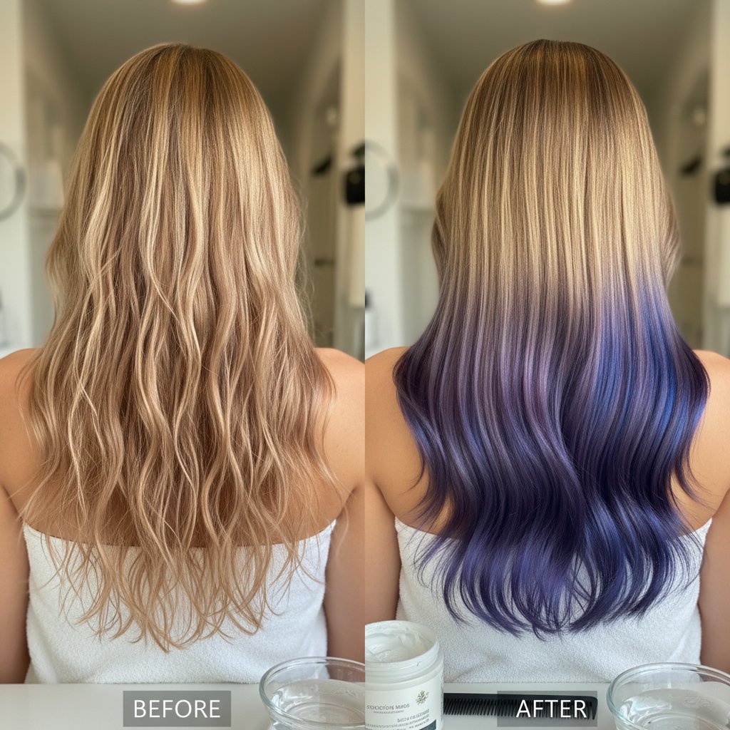 Before: Faded, dull color. After: Vibrant color and enhanced shine, illustrating how hair masks can revive colored locks.