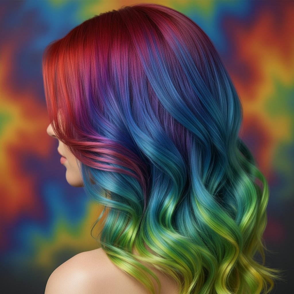 A dazzling display of color artistry, featuring a seamless blend of vibrant hues melting into one another.