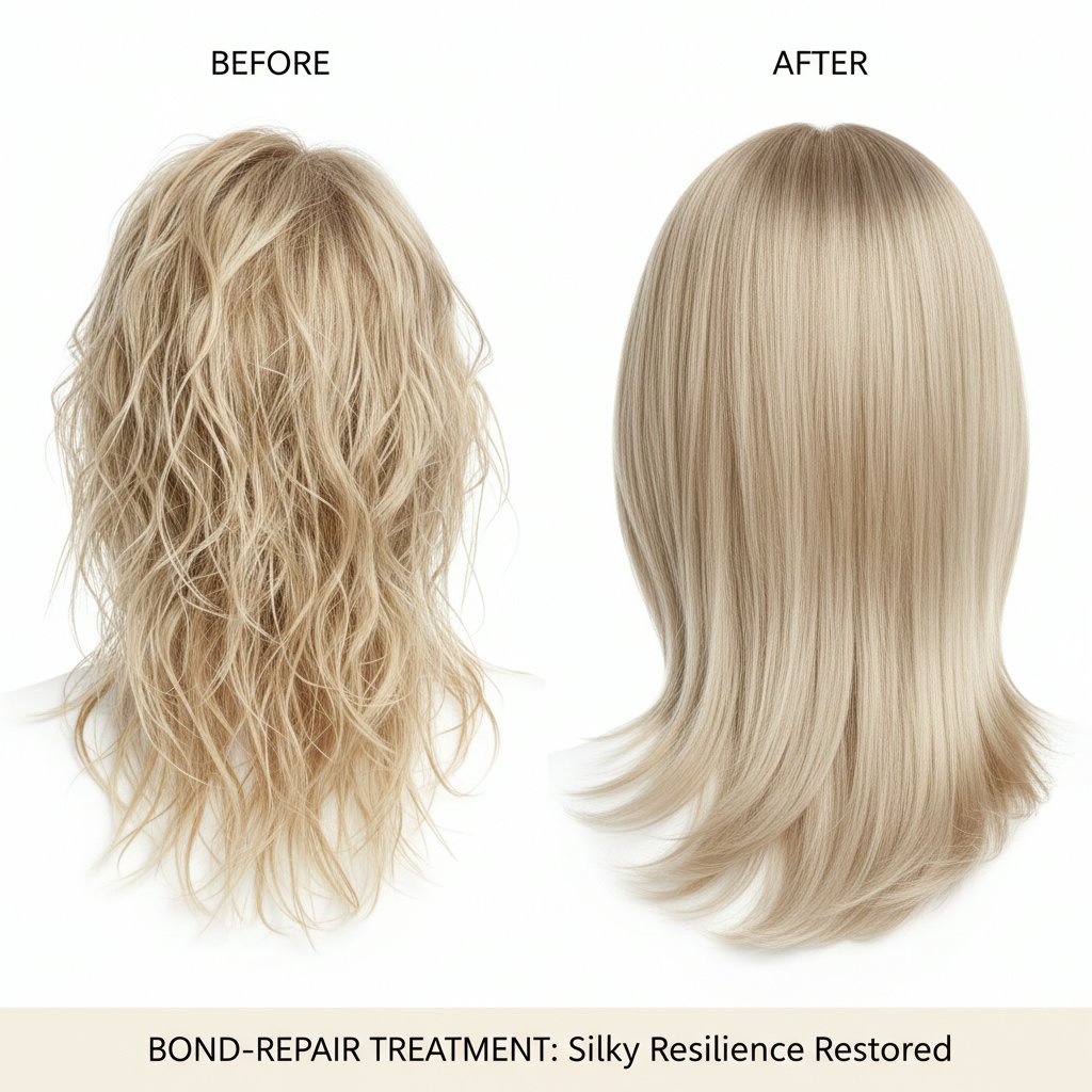 A striking transformation from over-processed brittleness to silky, resilient strands, highlighting the efficacy of bond-repair treatments.