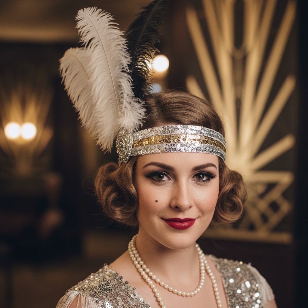 Travel back in time with a classic flapper bob, complete with sequined headbands and feather accents for a touch of glamour.