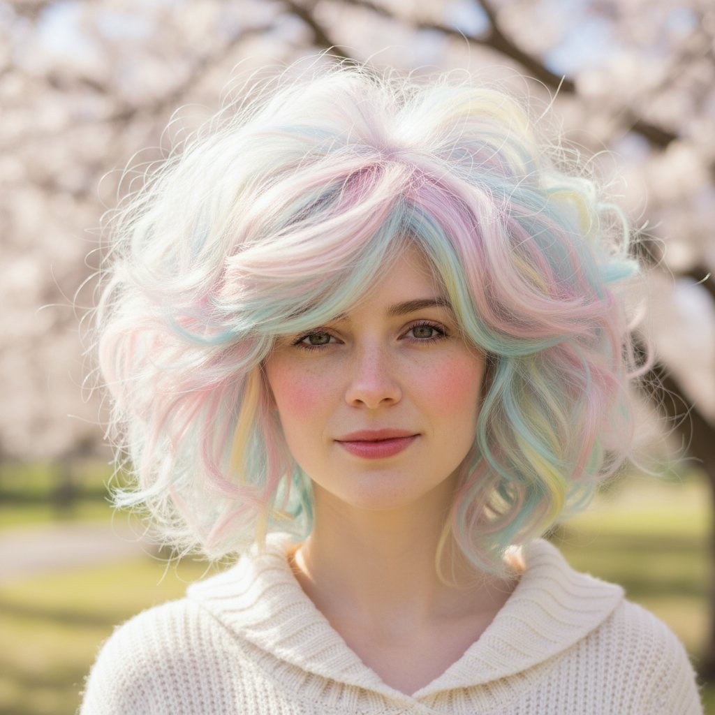 Embody a fairy tale dream with pastel-toned hair, styled in soft, fluffy layers resembling cotton candy clouds.