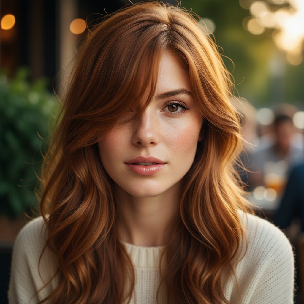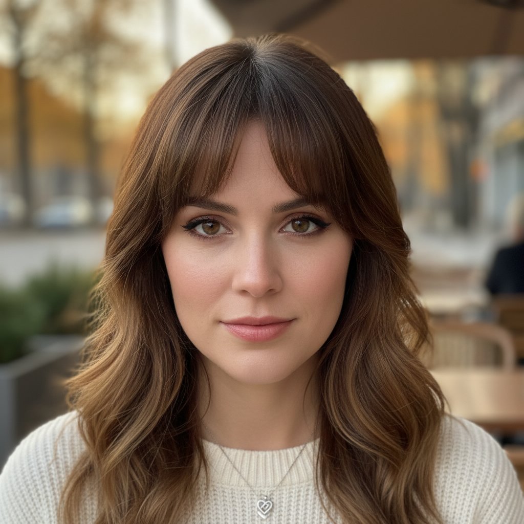 Side-swept bangs work wonders on a heart-shaped face by softly covering part of the forehead and drawing attention to the eyes.