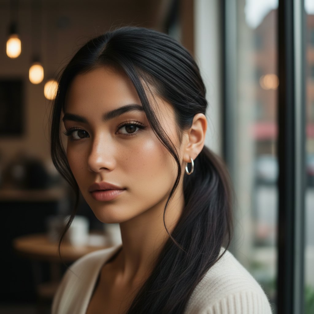 Sleek Ponytail with Wispy Bangs
