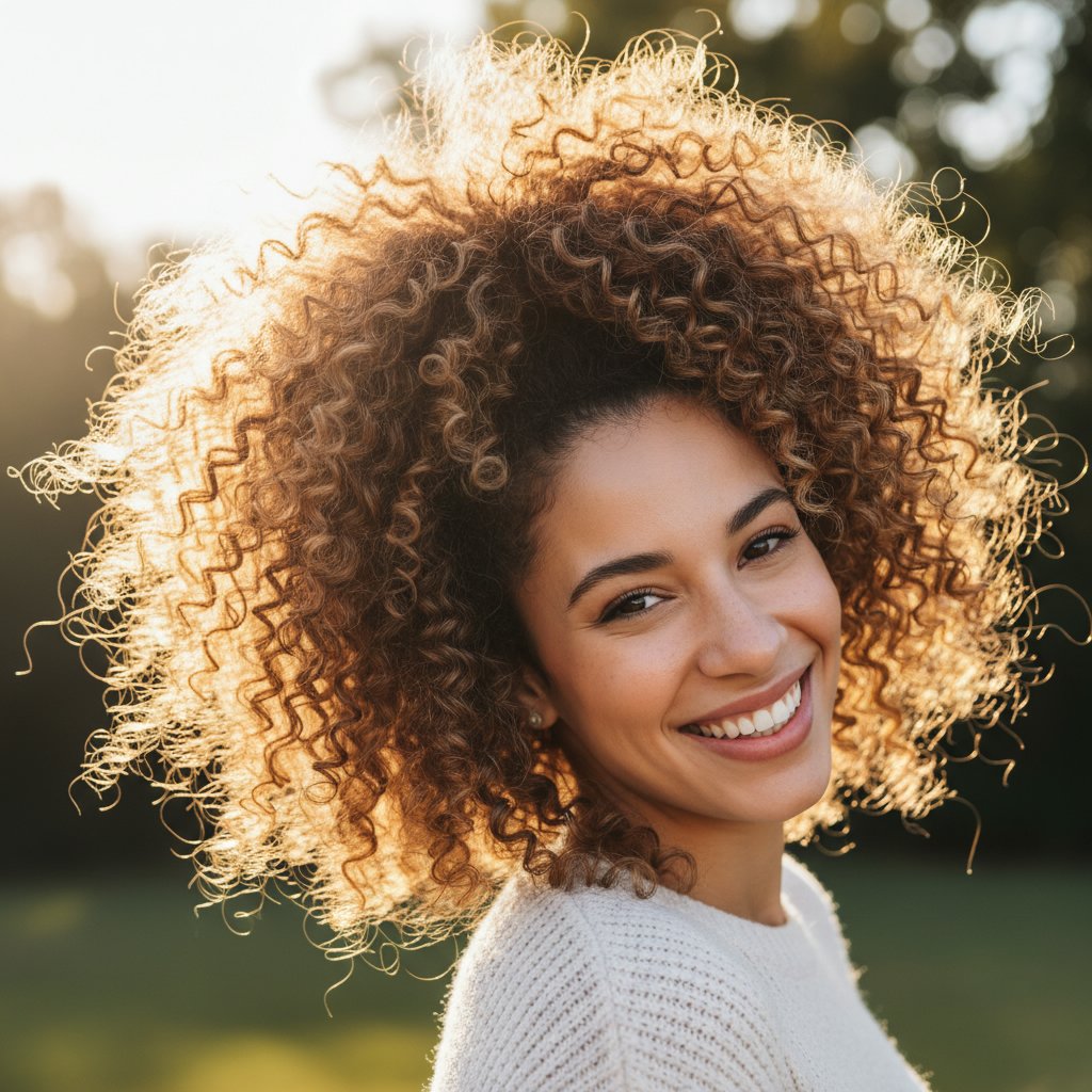 This style showcases a voluminous curly high ponytail that adds texture and playful drama, ideal for making a bold statement.