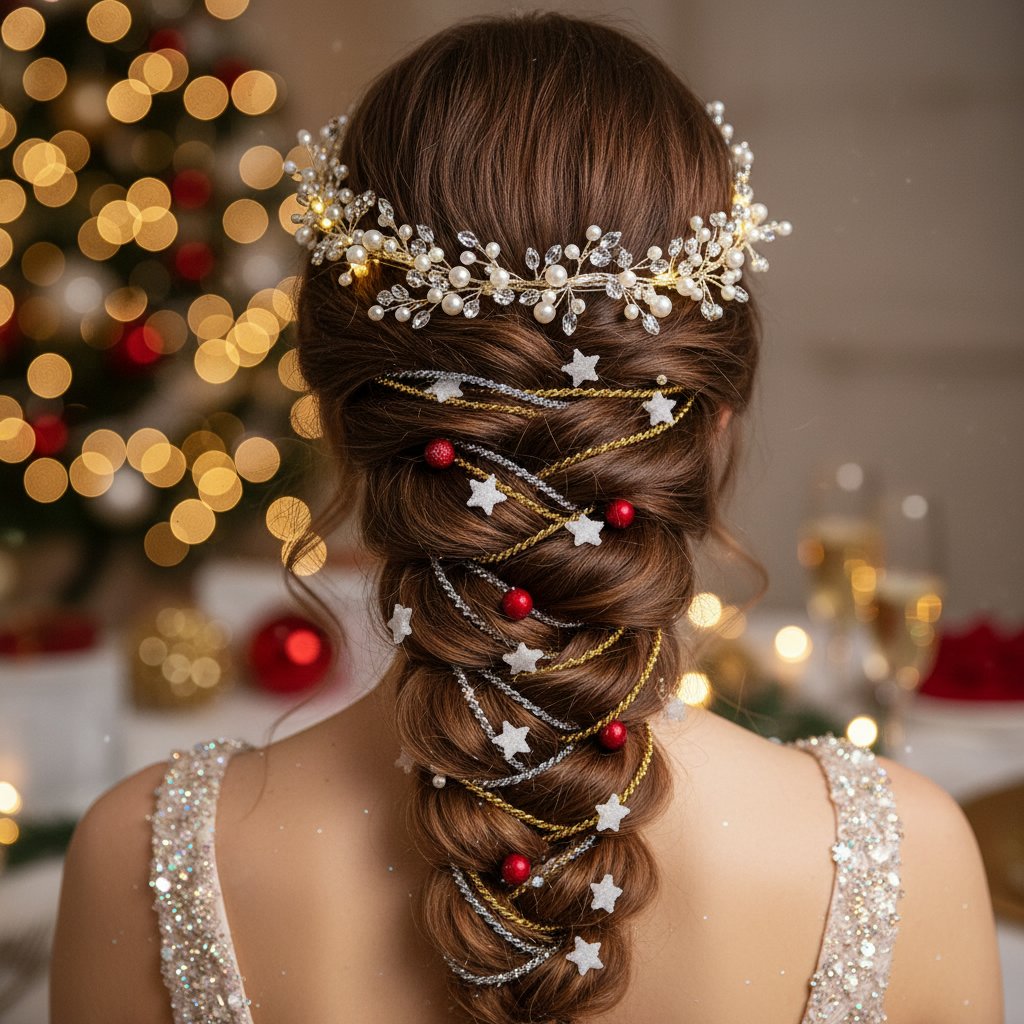 A captivating braid weaved with festive ribbons, merging tradition and style for holiday gatherings.