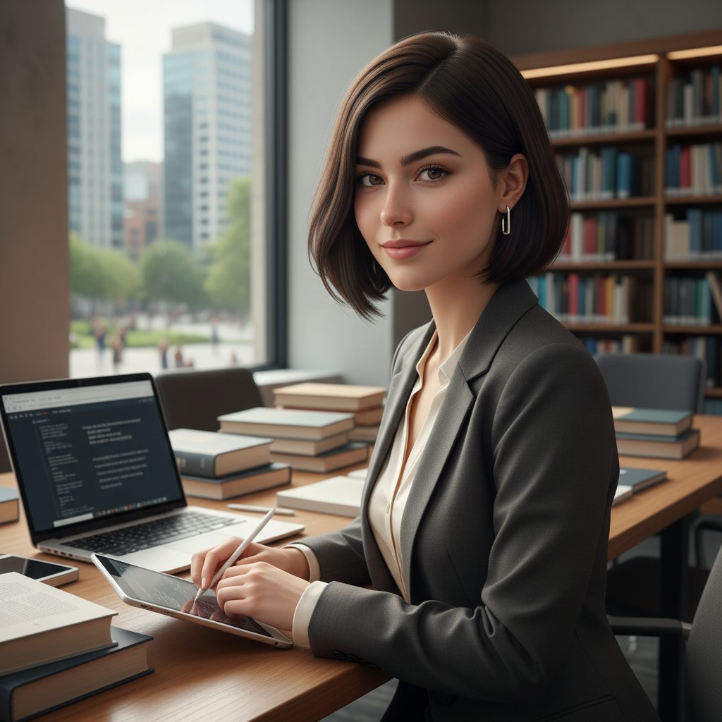 A sleek angular bob that speaks to the sharp intellect and cutting-edge style of an academically recognized student.