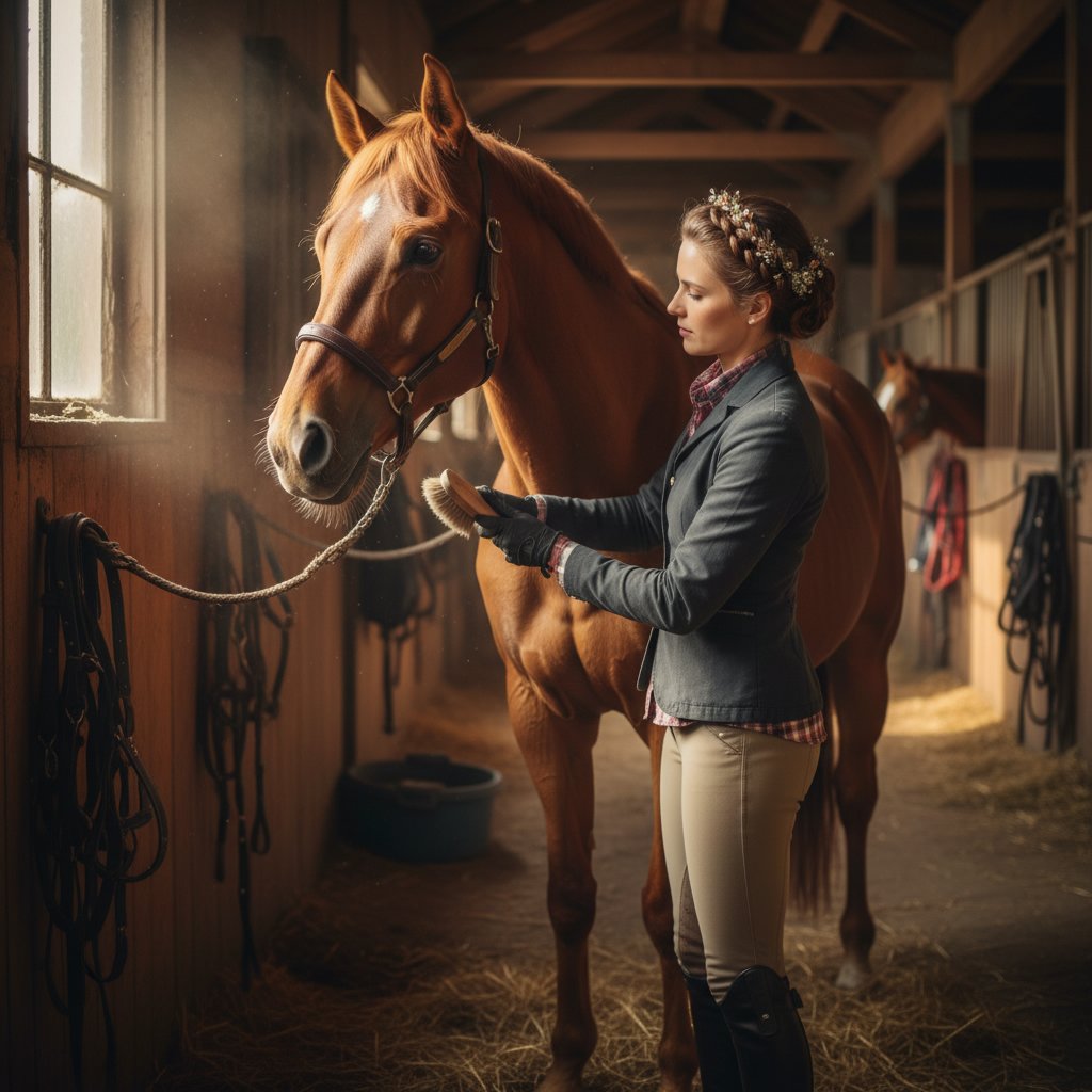 A fishtail braid, known for its durability, stays intact through long rides and competitions, blending functionality with style.