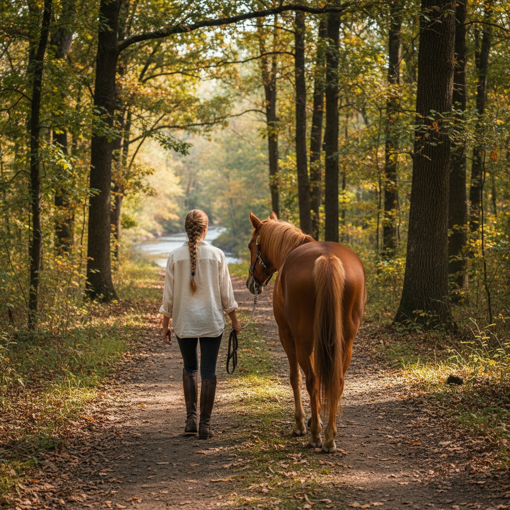 A French braid, slightly loosened for a touch of casual elegance, keeps hair neatly away from the face and neck during rides.