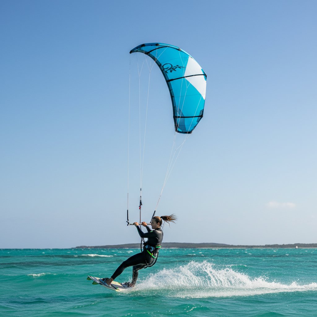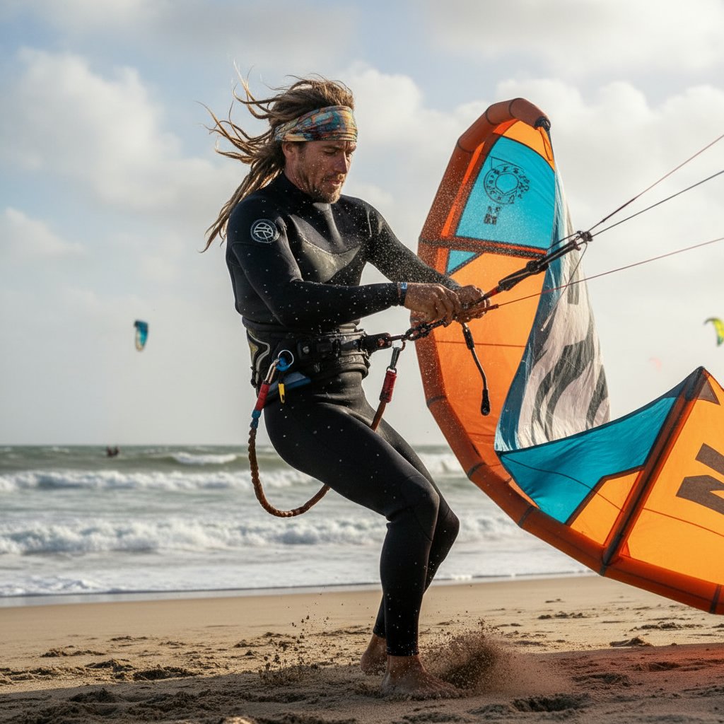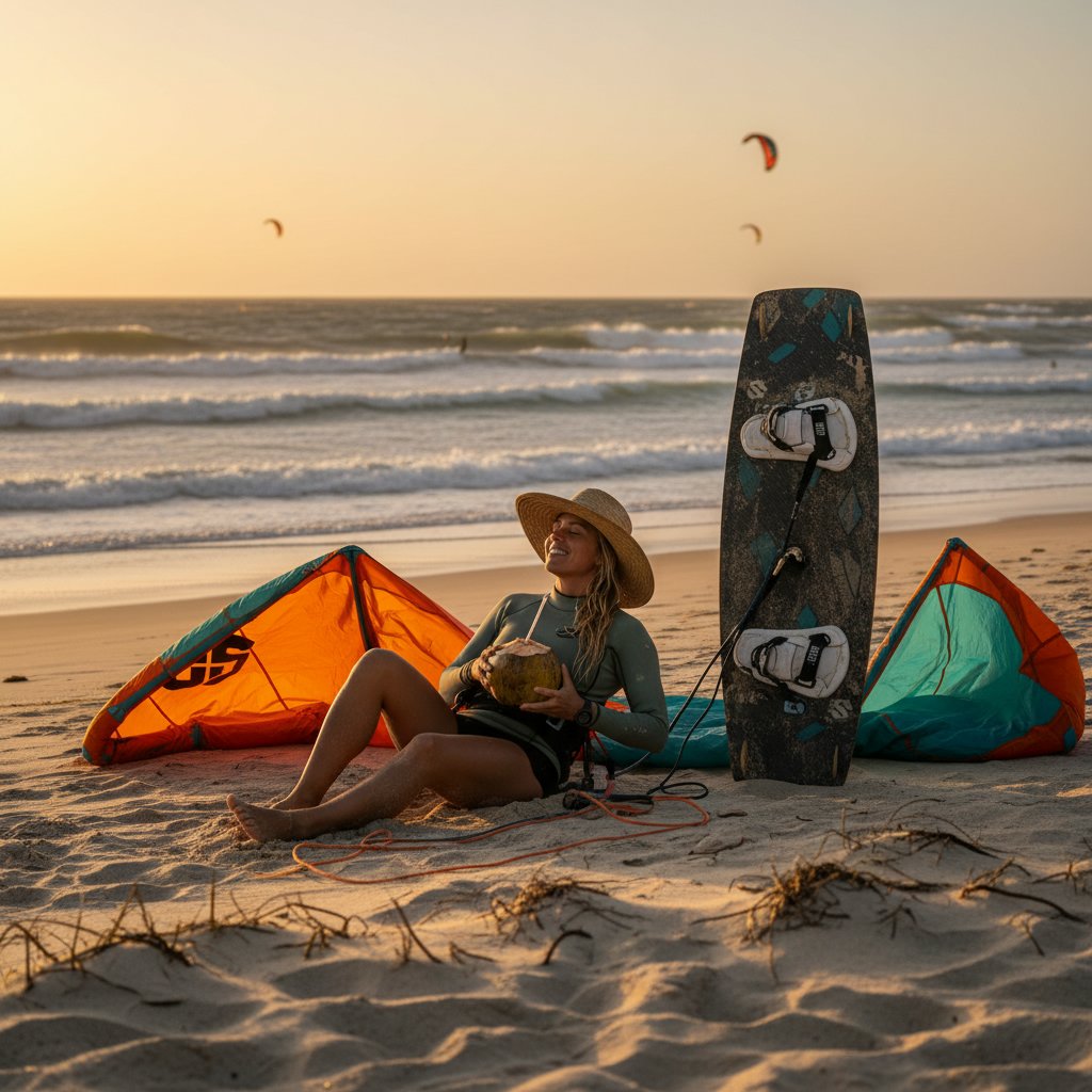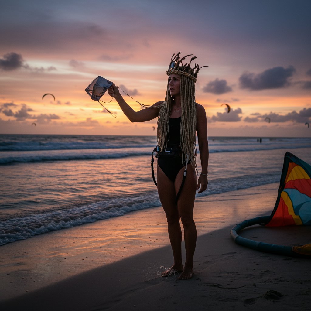 Let your hair down post-ride to showcase natural, windblown waves that capture the essence of the kitesurfing spirit.