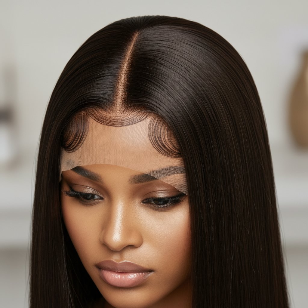 A sleek and straight lace front wig that exemplifies the wig's ability to offer a sharp, polished look with a natural hairline.