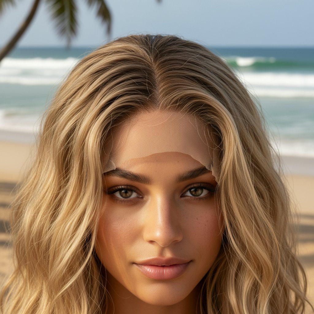 Capture the essence of summer with beach wave lace front wigs, blending casual style with sophisticated hairline solutions.