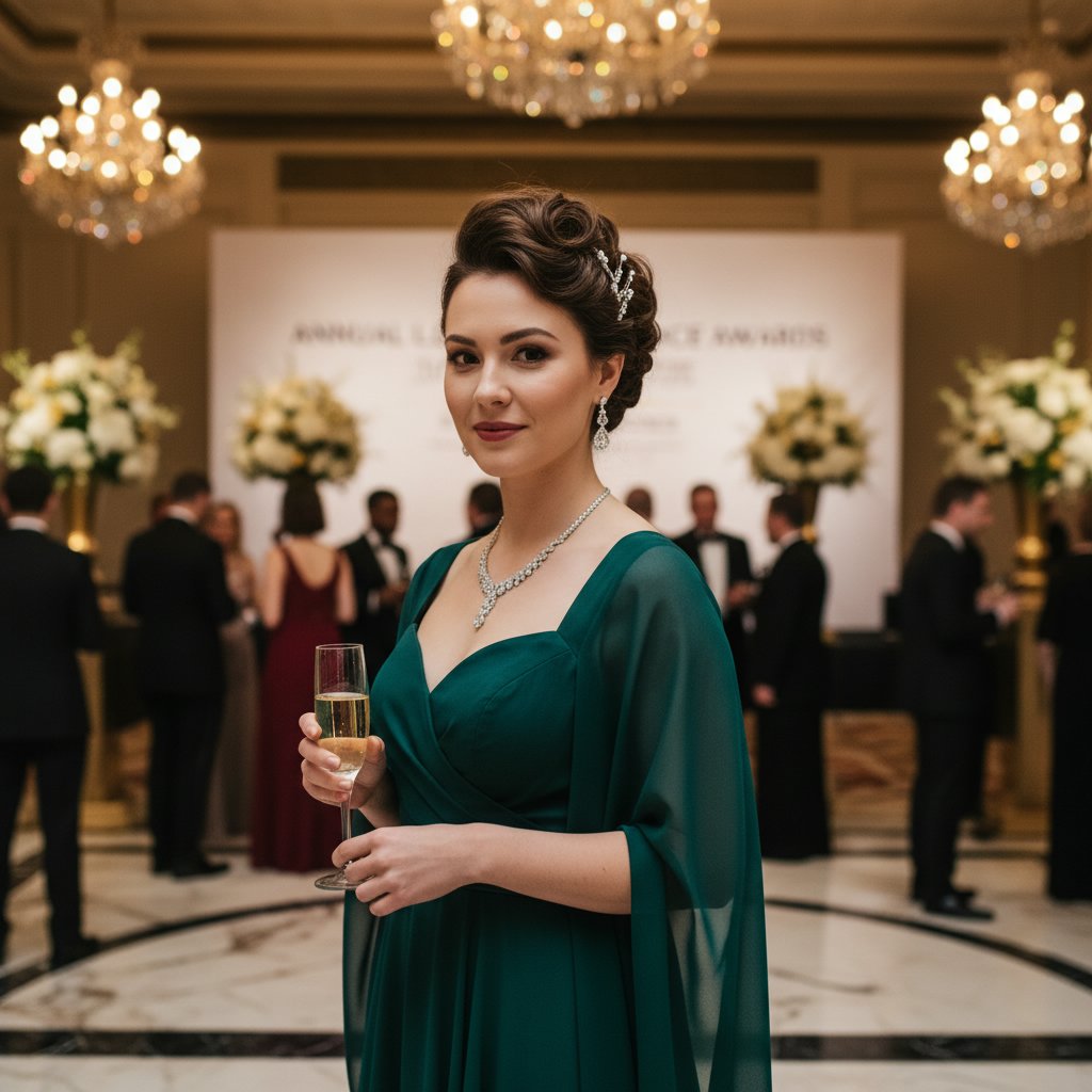An elegant updo accented with minimalist accessories combines professionalism with personal style, suitable for formal legal events.