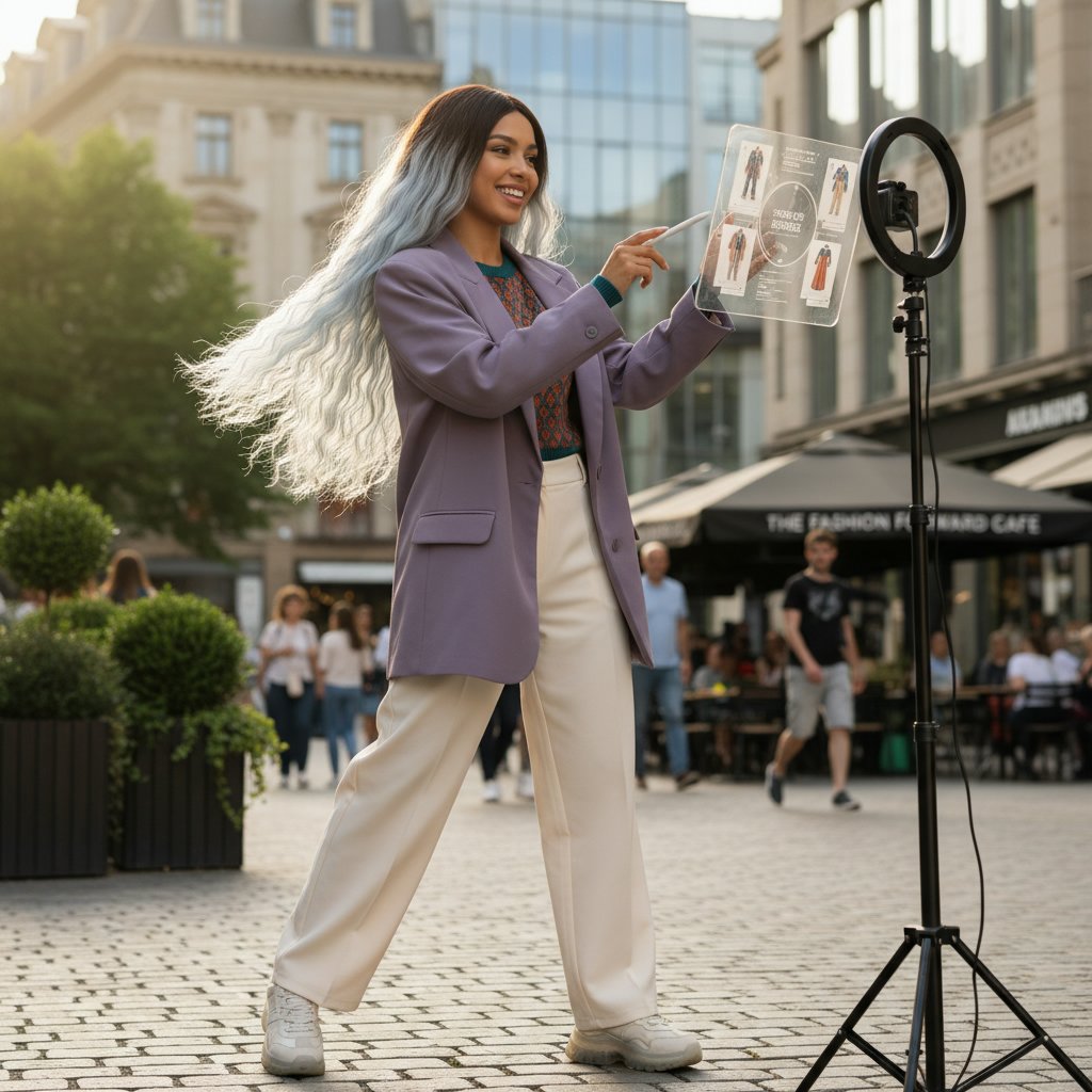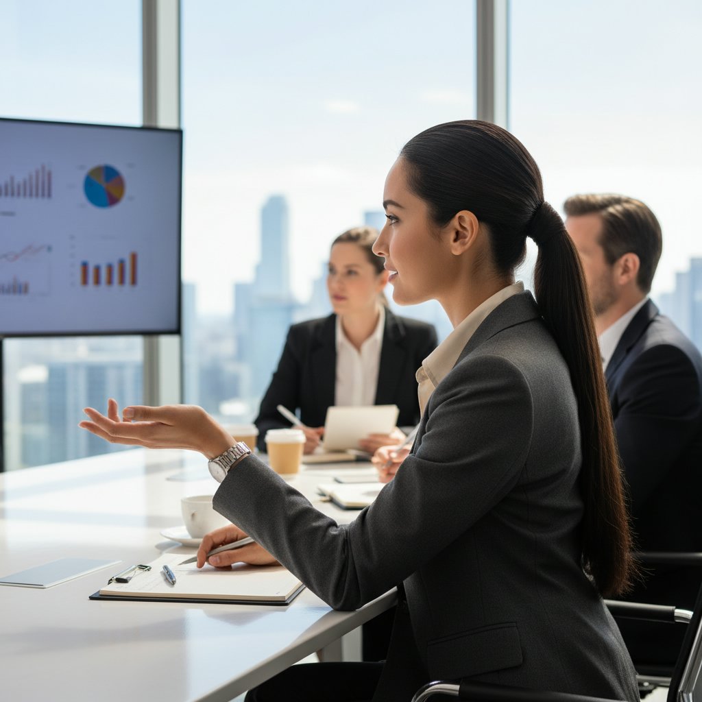 A long wig styled into a sleek ponytail provides an effortlessly chic look, great for both professional and casual settings.