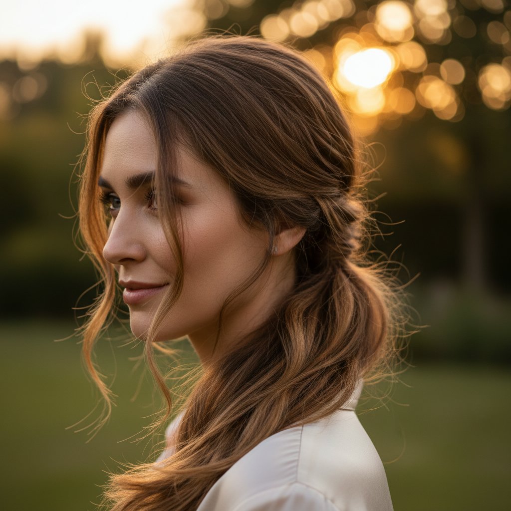 Incorporating a side braid into a low ponytail introduces an element of whimsy and detail, perfect for a unique twist.