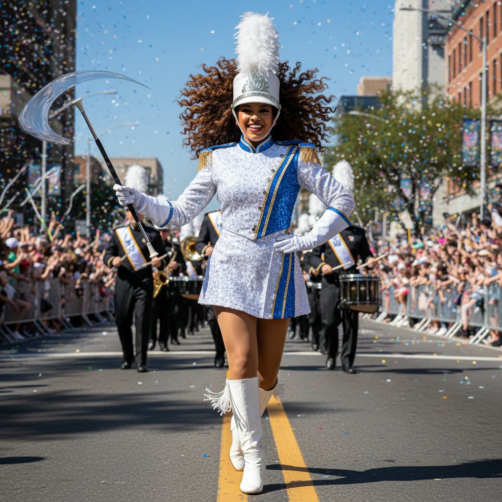 Glamorous curls that bounce with every step, perfect for majorettes leading the band with flair and finesse.