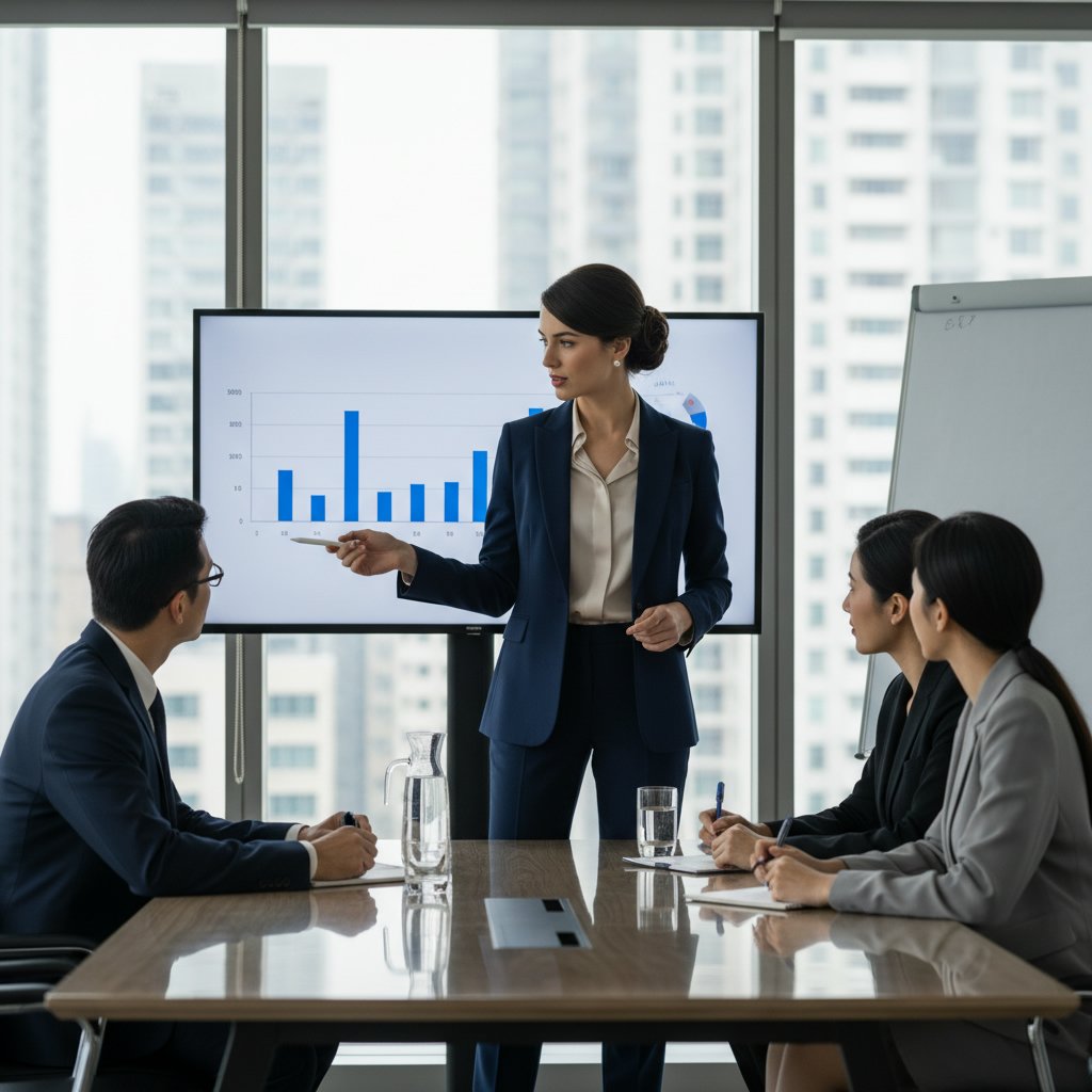 A sharp, well-maintained bob cut that brings a modern edge to traditional corporate attire, perfect for making bold statements.