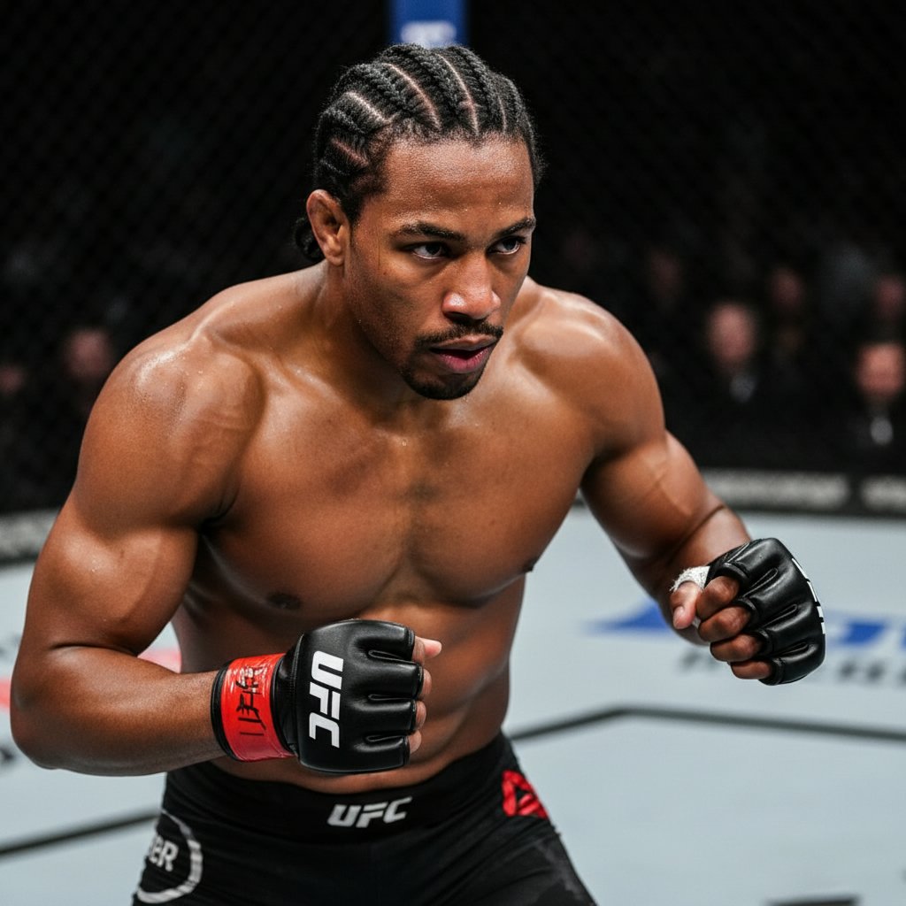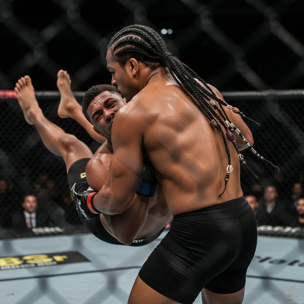 Cornrows that stay flush against the scalp, perfect for helmet wear and grappling, showcasing the fighter's readiness.