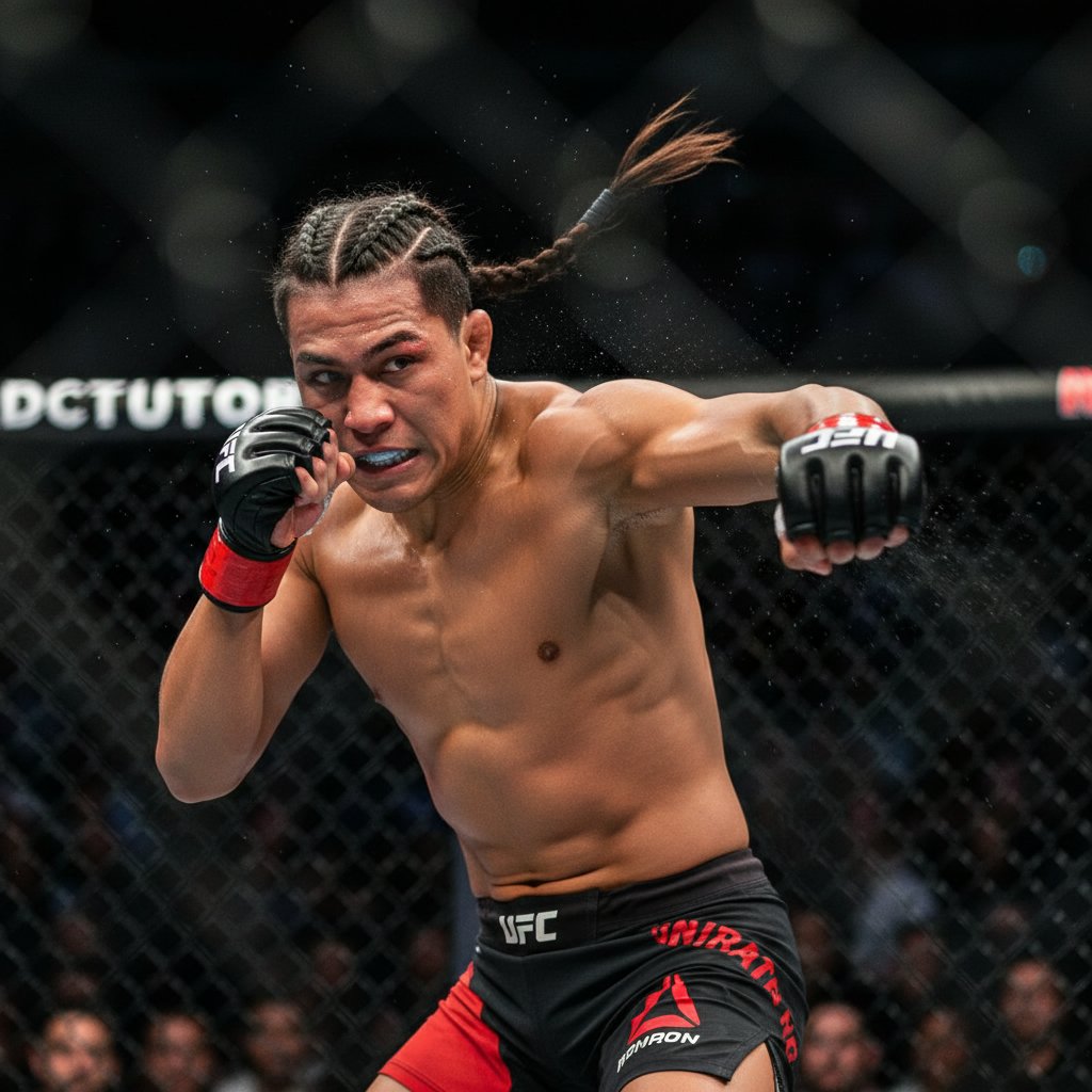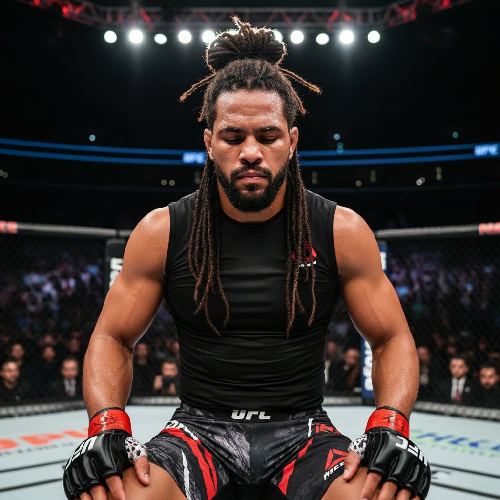 Securely tied dreadlocks that embody the fighter's determination and strength, keeping the focus on the fight.