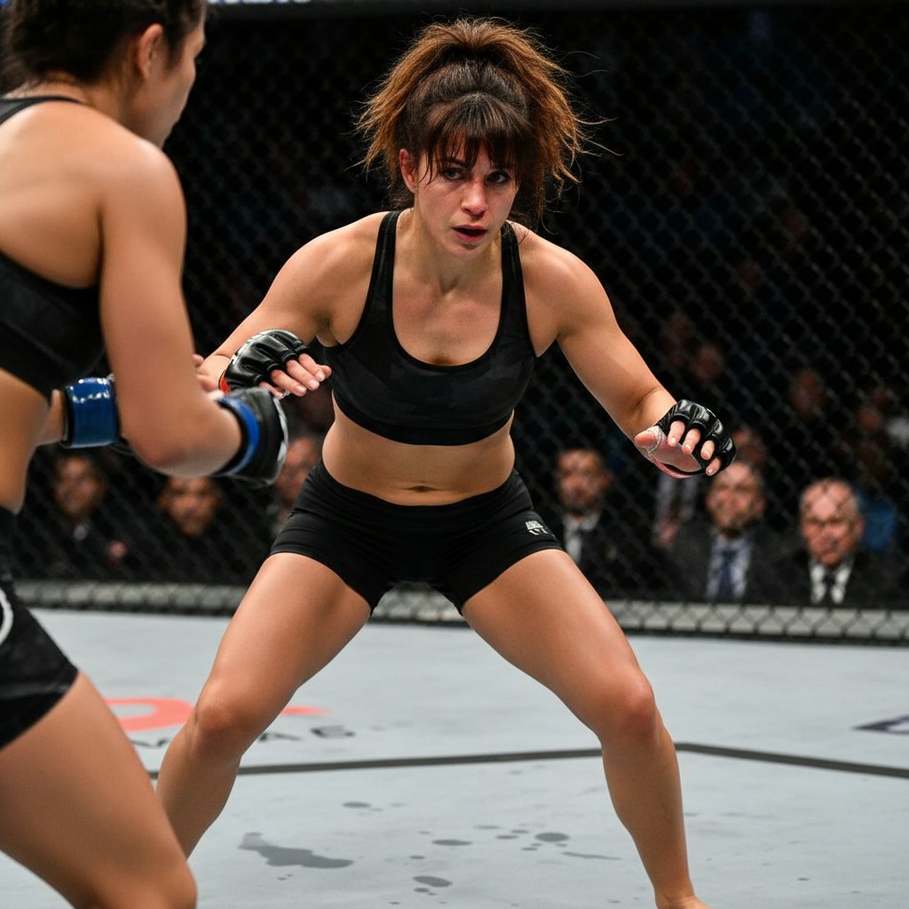 Layered hair that provides versatility and ease, adapting to the dynamic nature of MMA fighting.