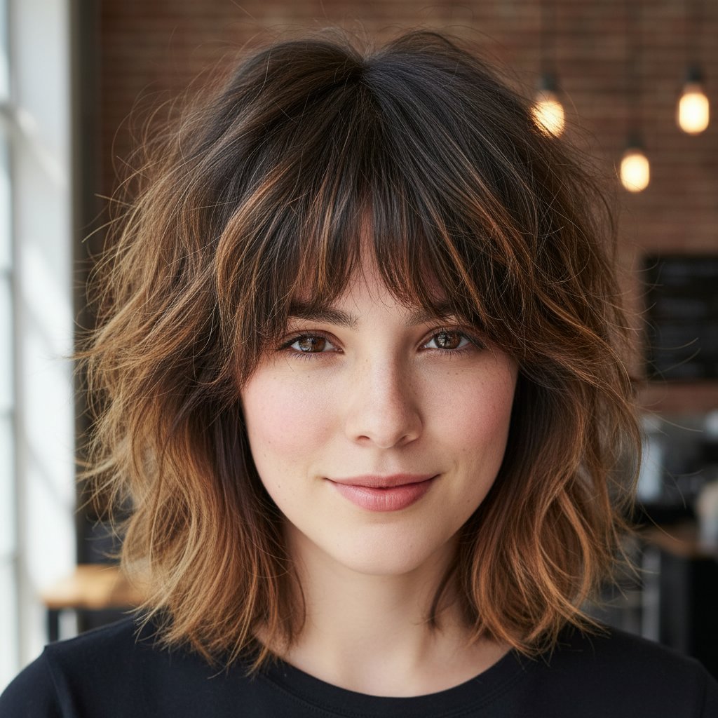 A softer take on the wolf cut, featuring gentle waves that add texture without sacrificing the cut's inherent edge.
