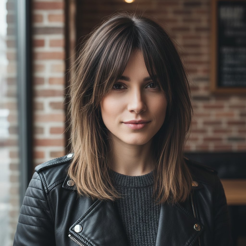 The modern wolf cut goes sleek with straight, textured layers that bring a sharp, sophisticated contrast to the style's rebellious nature.