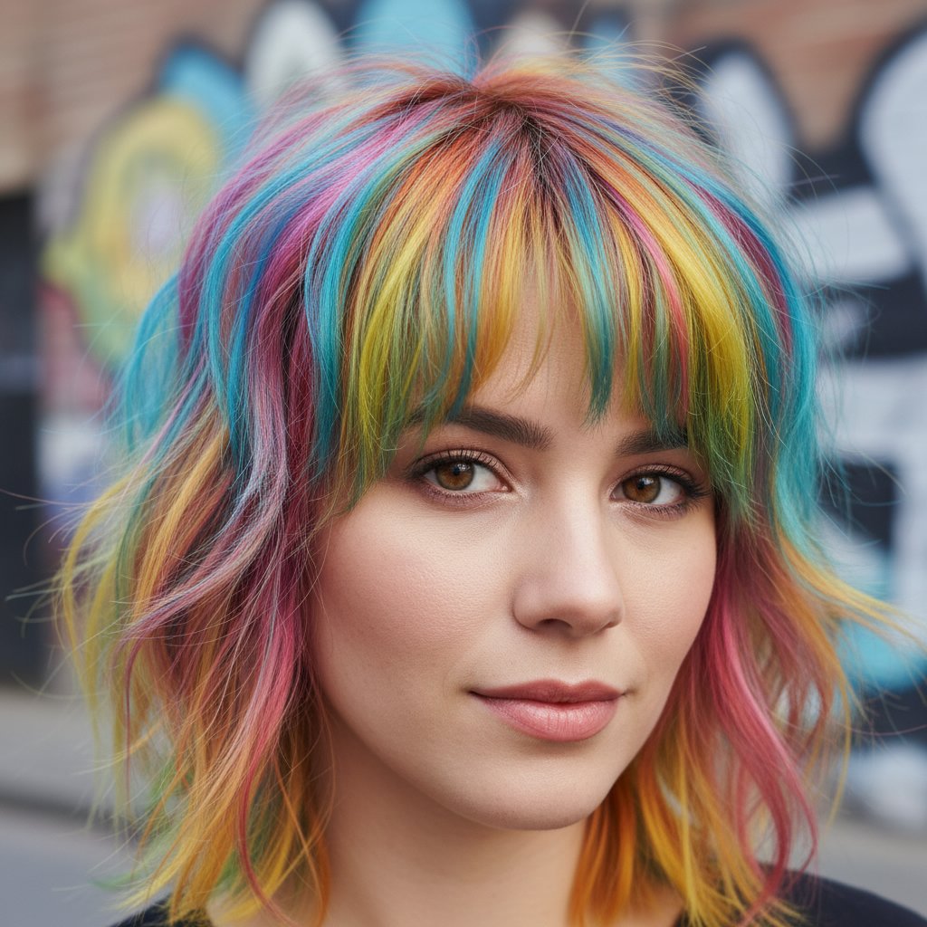 This wolf cut variation stands out with its use of vibrant color, adding an extra dimension to the textured layers.