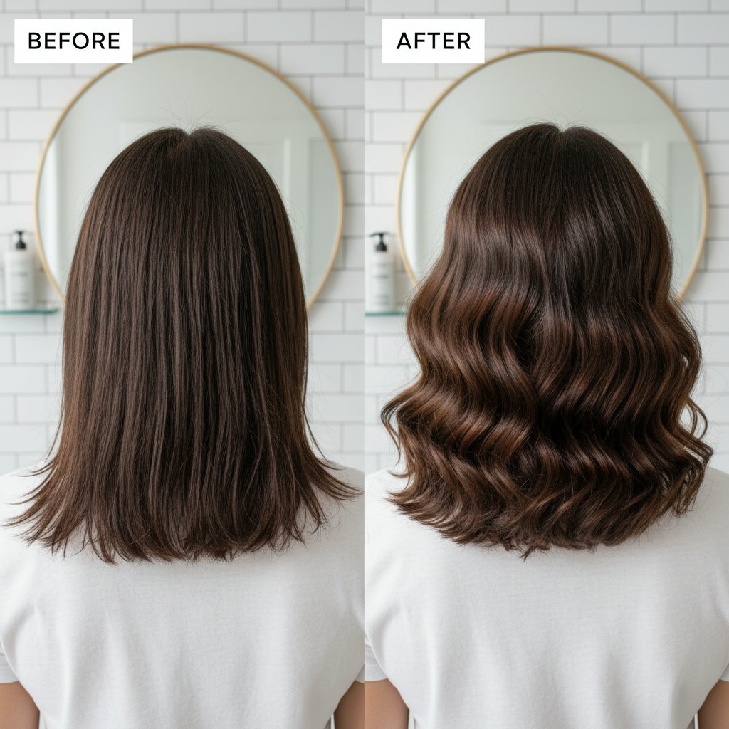 Before: Flat, limp hair. After: Voluminous locks full of life, proving moisture can lift even the limpest strands.