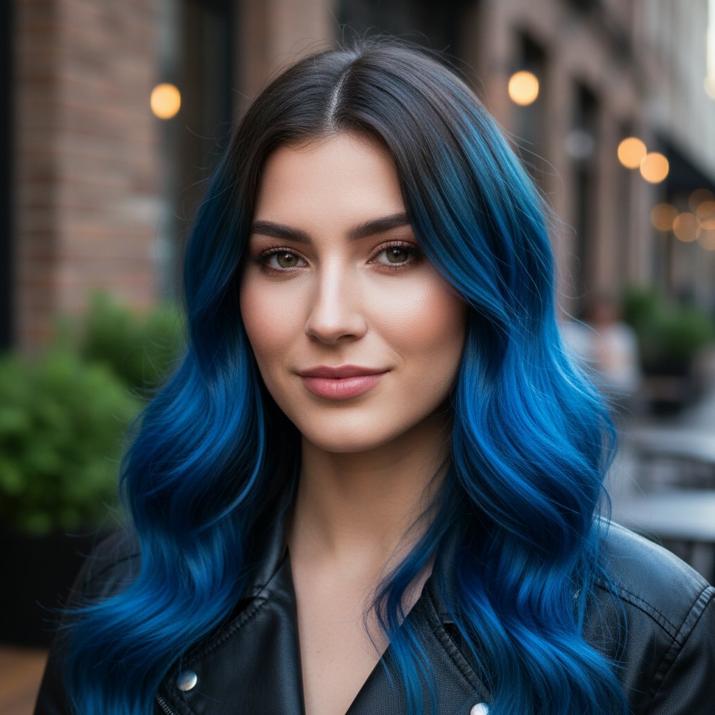 Electric blue money piece highlights stand out against any hair color, offering an electrifying pop that demands attention.