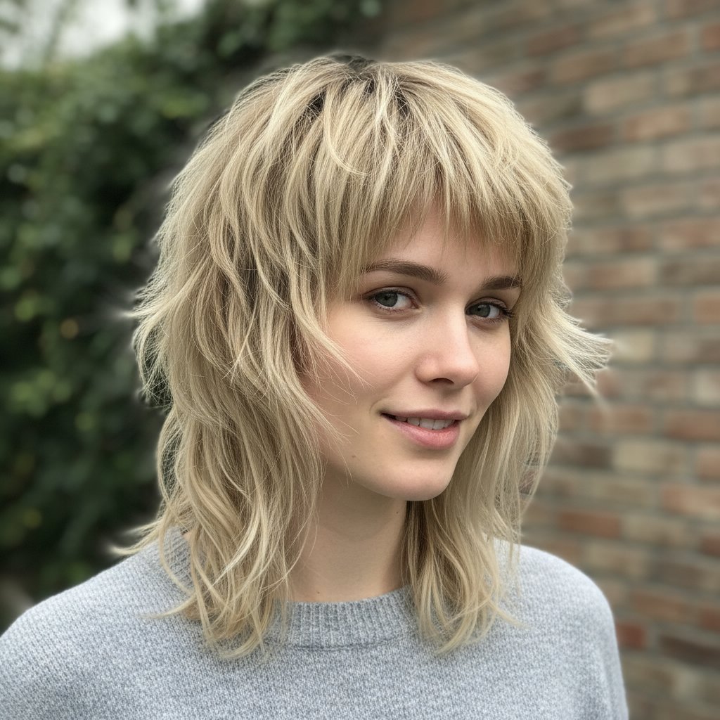 Incorporating bangs brings a fresh and youthful twist to the mullet, blending the style lines between retro and contemporary.