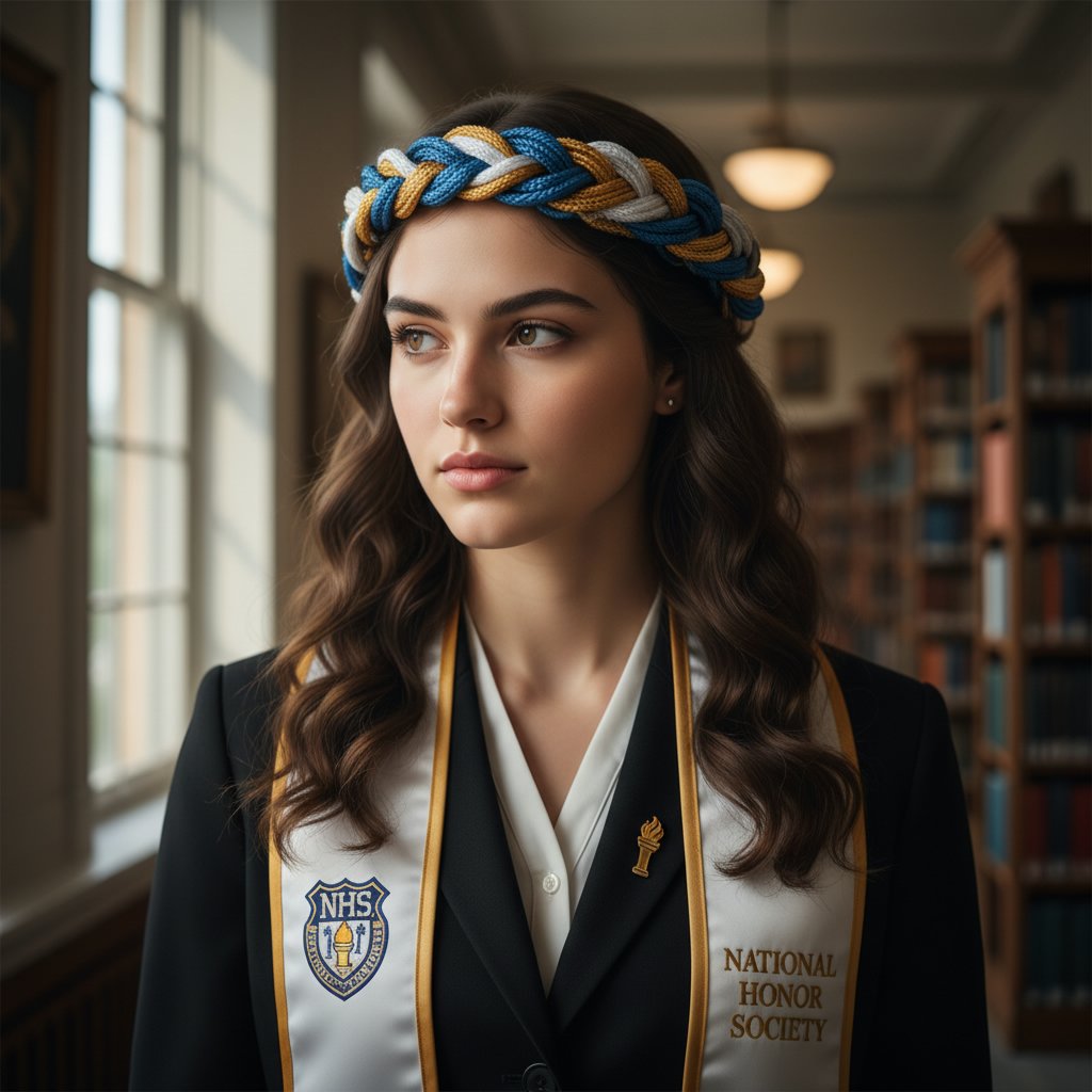 A braided crown, symbolizing leadership and integrity, two core values of the NHS, perfect for events highlighting service and achievement.