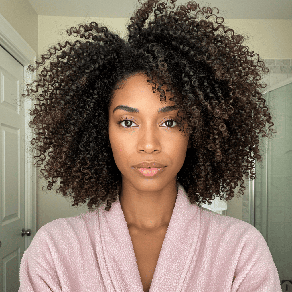 Third-day hair refresh on 4A texture showing how proper nighttime routine maintains definition throughout the week.