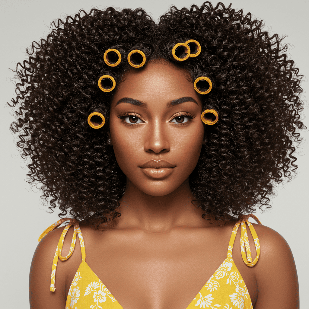 Heatless flexi rod set creating uniform spirals on 4A hair, demonstrating defined curls without heat damage.