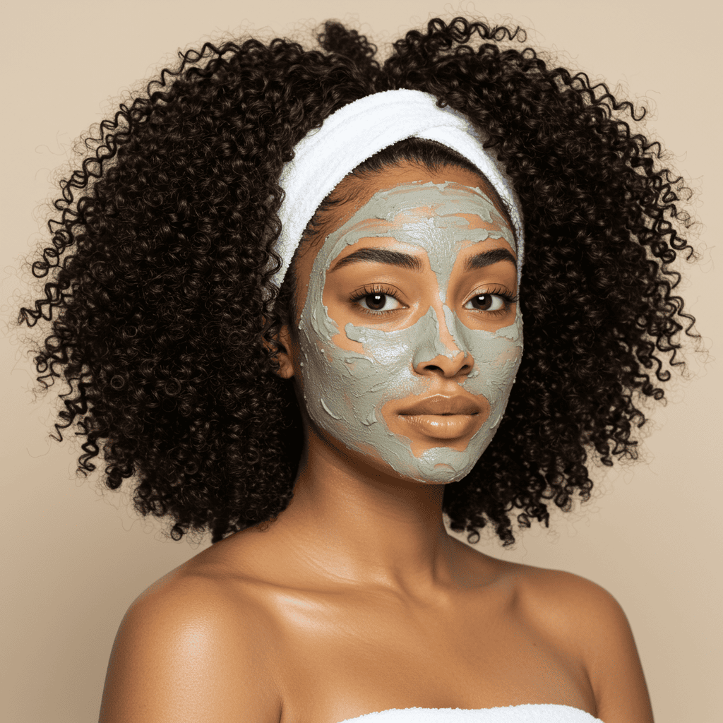 Results of bentonite clay mask on 4C hair, showing improved definition and clarified scalp.