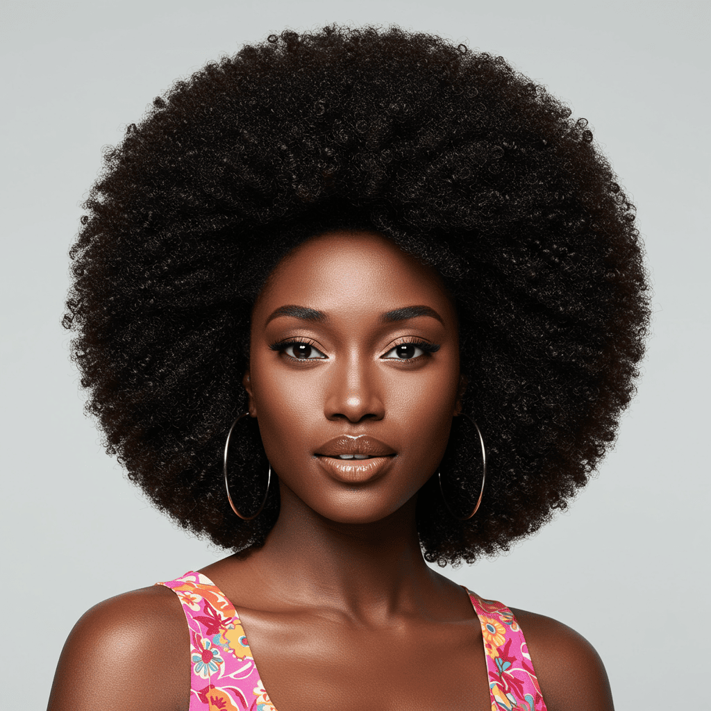 Stunning 4C afro picked out to maximum volume, celebrating the density and versatility of the tightest coil pattern in its full glory.