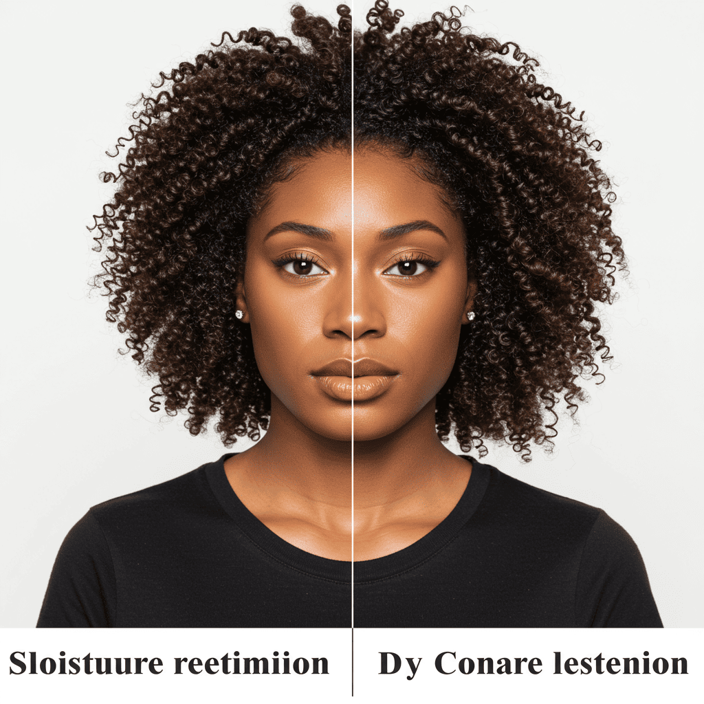 Visual moisture retention test on 4C hair showing the dramatic difference proper hydration makes.