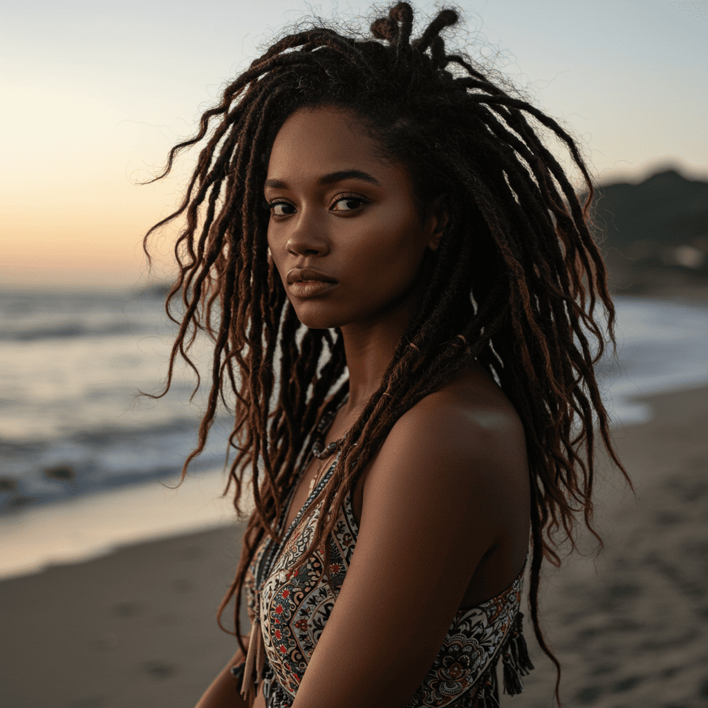 Goddess locs combining the protection of traditional locs with romantic, wavy texture for a bohemian protective style.