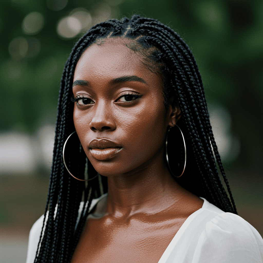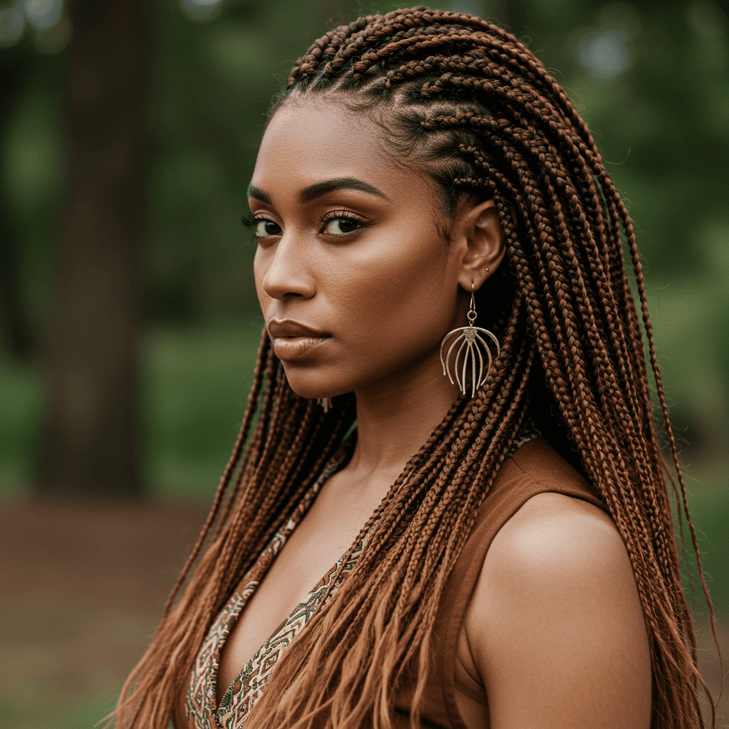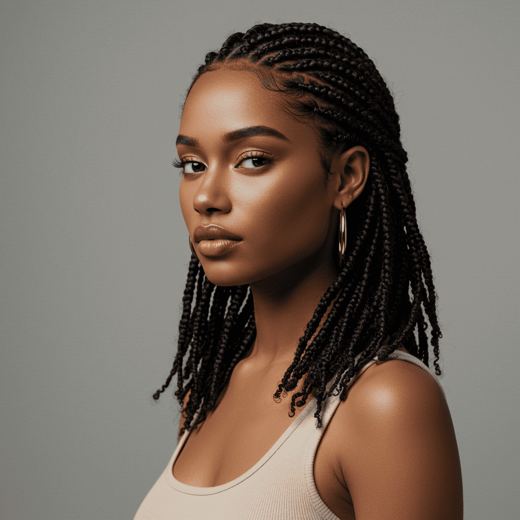 Classic protective style featuring medium box braids that protect natural hair while allowing for versatile styling and length retention.