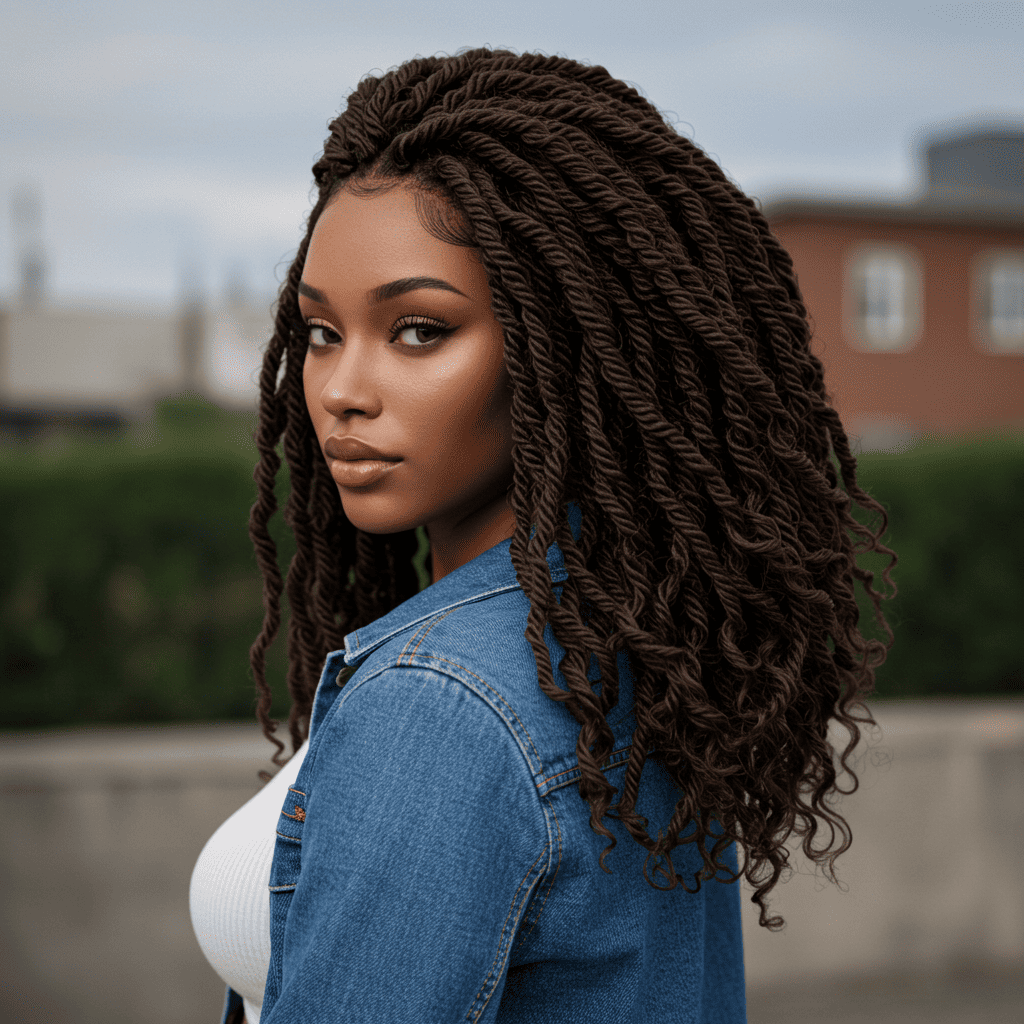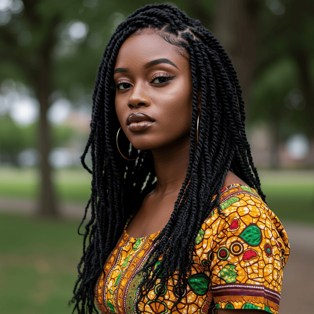 Chunky Marley twists creating a natural, textured protective style that mimics natural hair texture.